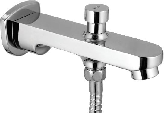 / Bath Tub Spout with Button Attachment for Hand Shower with Wall Flange